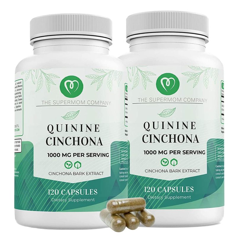 The Supermom Company Quinine Cinchona Bark Extract Herbal Supplement for Boosting Immune System, Leg Cramping Relief, Muscle Cramps and Overall Digestive Health - 1000 mg Per Capsule (2 Bottles)