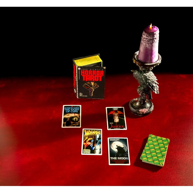 Todd Alcott's Horror Tarot is a full tarot deck of 78 cards with a bespoke Instruction Booklet to guide you through the thrilling and terrifying world of the Major Arcana and all four gasp-inducing suits of the Minor Arcana.