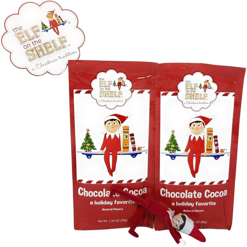 The World's Smallest Elf on The Shelf Boy with Matching Small Christmas Stocking and Two Elf on The Shelf Hot Chocolate Cocoa Mix Packs