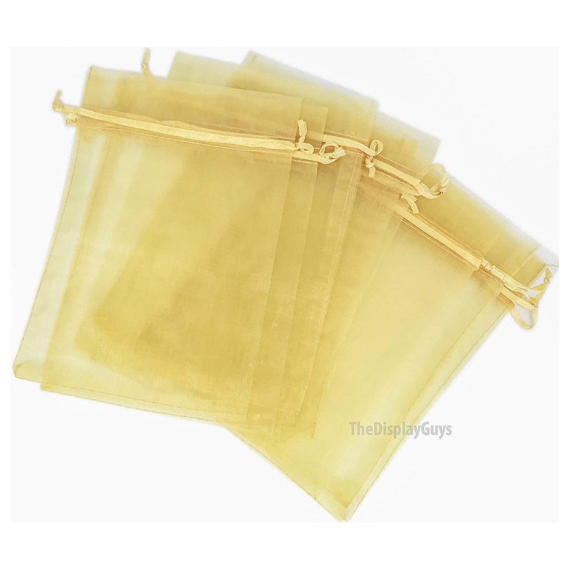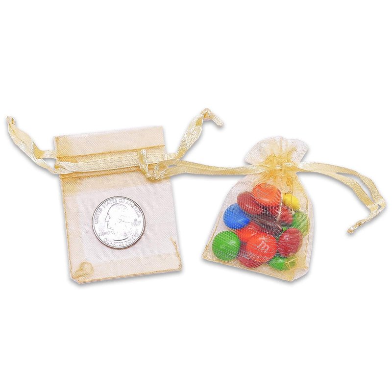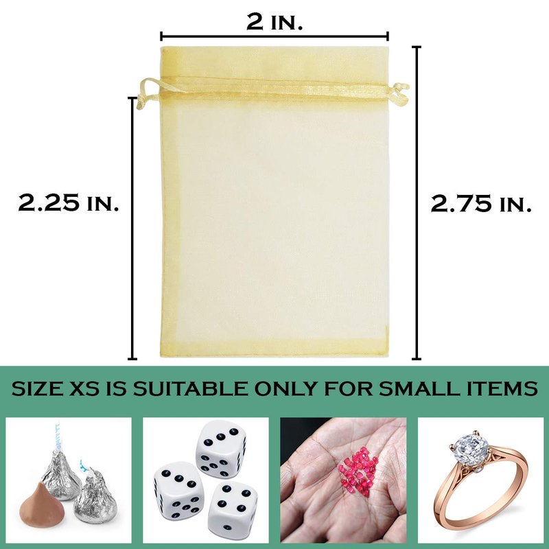 TheDisplayGuys 100-Pack XS 2 x 2 3/4" Gold Sheer Organza Gift Bags with Drawstring, Jewelry Candy Treat Wedding Party Favors Mesh Pouch