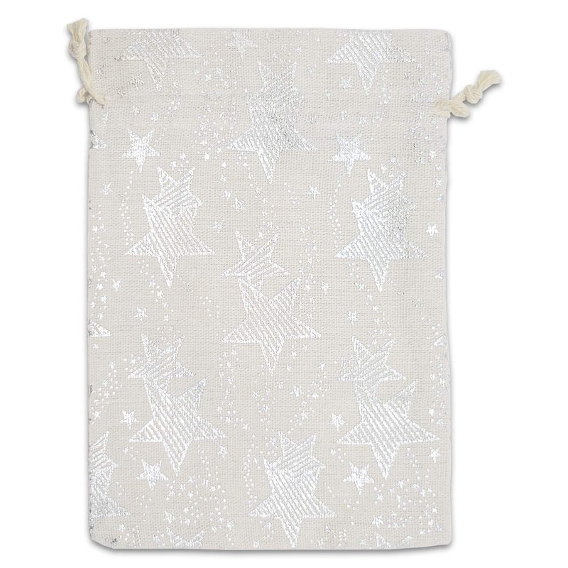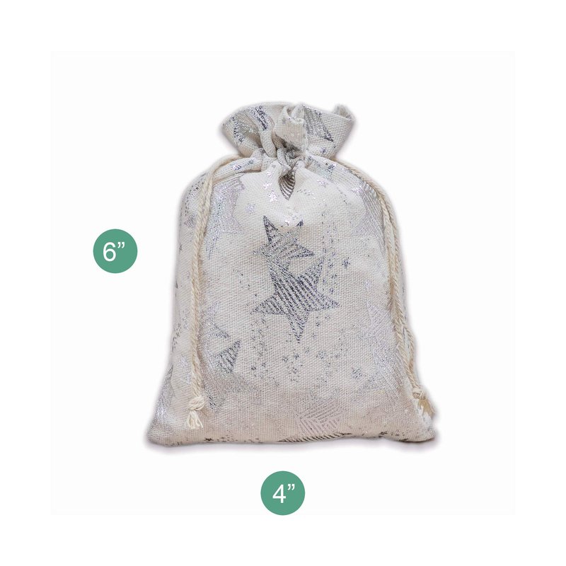 TheDisplayGuys For Your Modern Living 48pk - 4x6 Muslin Pouches with Drawstring - Presents, Party Favors, Samples (Silver Stars, Small)