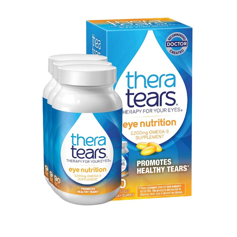 TheraTears 1200mg Omega 3 Supplement for Eye Nutrition, Organic Flaxseed Triglyceride Fish Oil and Vitamin E, 90 Count (Pack of 3)