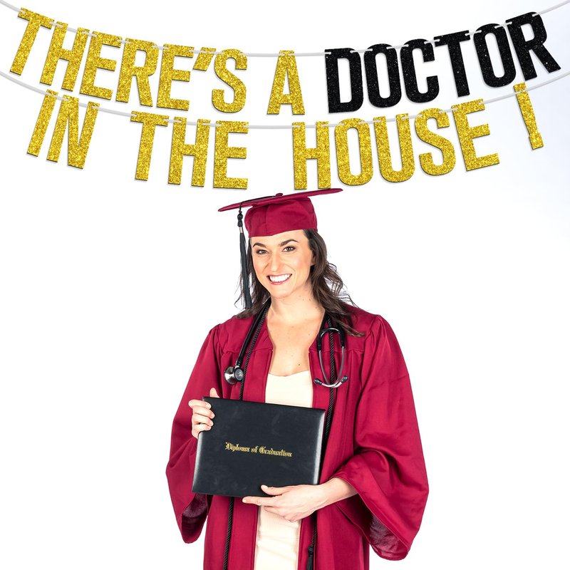 There's a Doctor in The House Banner, Congrats Doctor/Future Doctor, 2024 Medical College Graduation Party Decorations Supplies, Gold Glitter