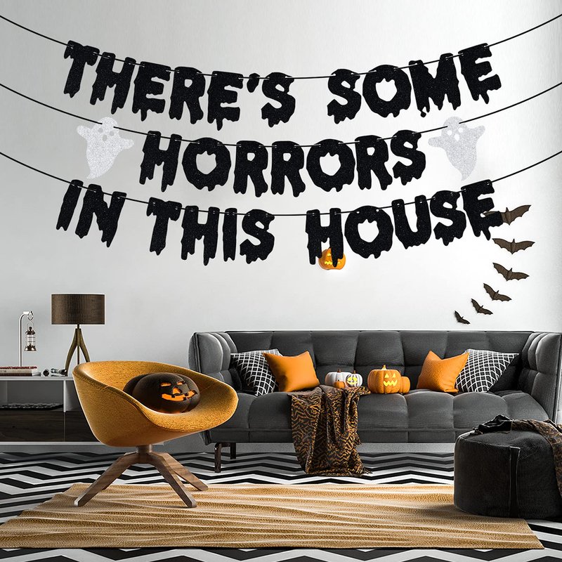• 👿Halloween Decorations: This 'There's Some Horrors in This House' banner is perfect for adding a haunting touch to your Halloween party decorations.