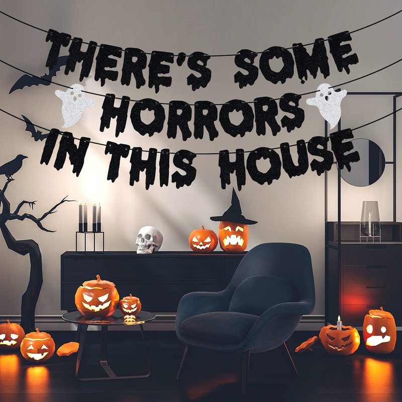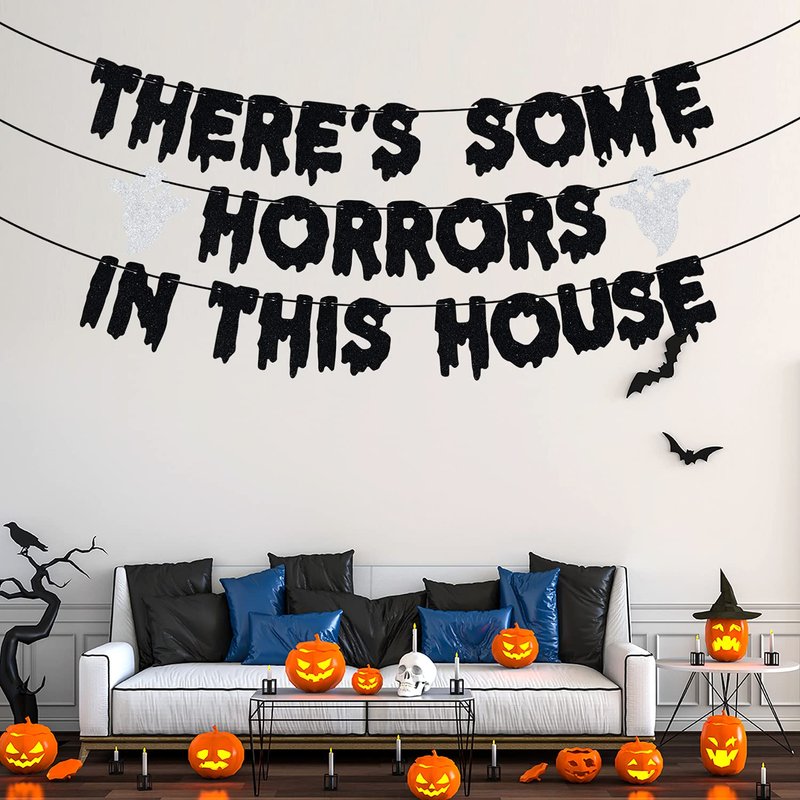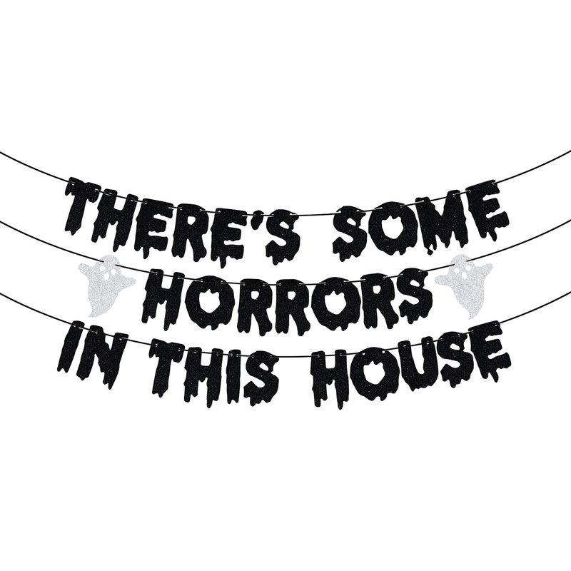 Unleash the spooky spirit this Halloween with the "There's Some Horrors in This House" banner!: