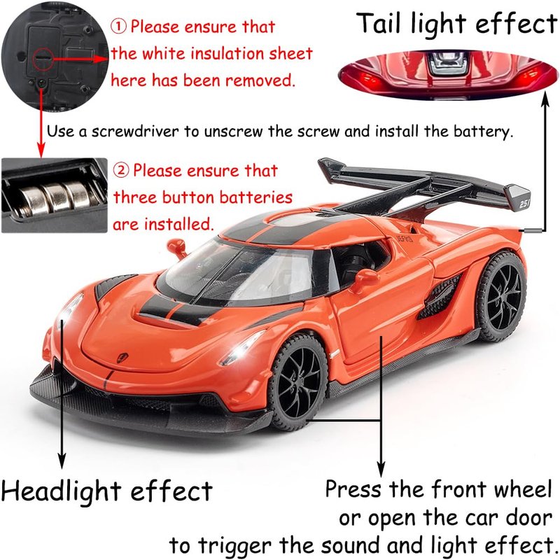 Therina Toy Cars Model Koenigsegg Jesko Orange Alloy Collectibles Die-cast Vehicles with Sound and Light