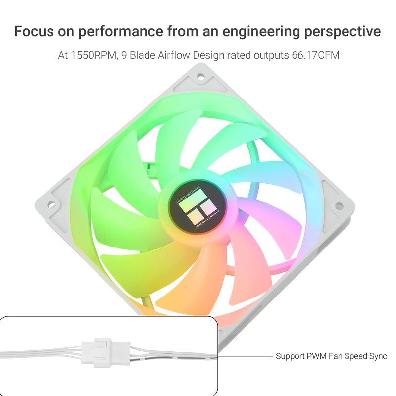 CPU fan Parameters:Model: TL-C12CW-S X3Size: 120*120*25mmSpeed: 1550RPM±10%Noise: 25.6db(A)Airflow: 66.17CFMWind pressure: 1.53mm H2OFan connection: 4PIN PWM Lighting interface: 5V 3PIN ARGBVoltage: 12V DCCurrent: 0.2ABearing type: S-FDBPackaging:Instruction manual x 1, TL-C12CW-S fan×3, screws x 12