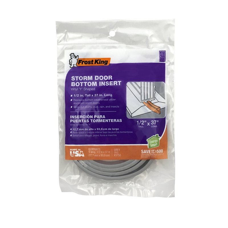 Thermwell Y3750 1/2-Inch x 37-Inch Vinyl "Y" Shaped Storm Door Bottom Replacement Insert For Aluminum Storm Doors, Gray