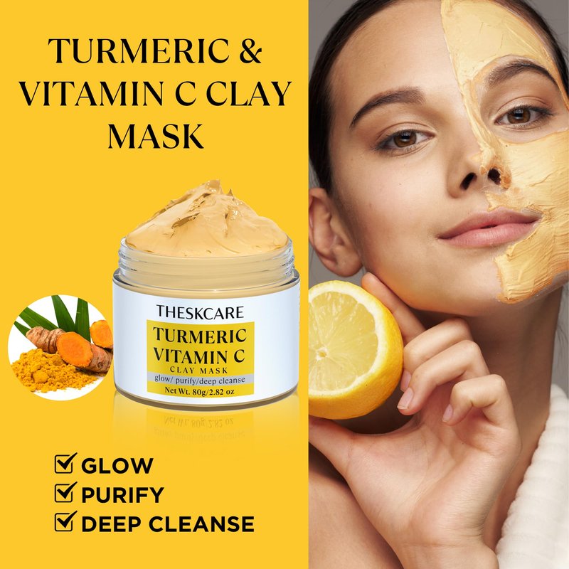 - TURMERIC VITAMINC CLAY MASK - Vitamin C helps to improve facial complexion and provides skin a natural glow. Turmeric Vitamin C Mud Mask purifies pores, deep cleanses pores, reduces pigmentation, enhances radiance, helps achieve a more even skin tone, and increase skin elasticity.