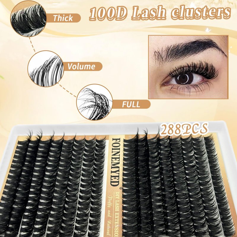 Thick Eyelash Extension 288 Pcs 100D Fluffy Cluster Lash Extension Wispy Lash Clusters D Curl 9-16mm Individual Eyelashes DIY at Home by FOINEMYED