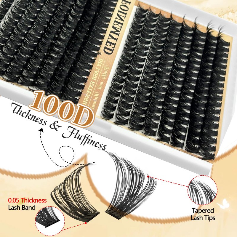 - 【Fuller, fluffy lashes await!】: Thicker, fuller, fabulous lashes await! 80D and 100D thick eyelash clusters created a volume effect. The perfect blend of curvature and thickness achieves a charming look that feels neither too heavy nor overwhelming. Ideal for any occasion, whether it's a day at work, a romantic date, or a special event.