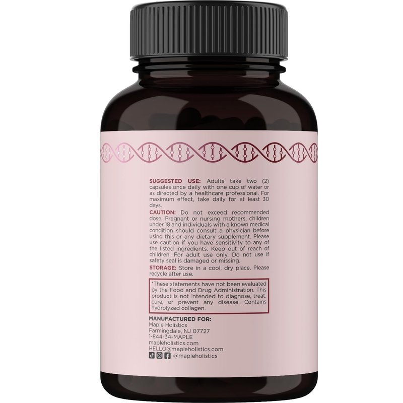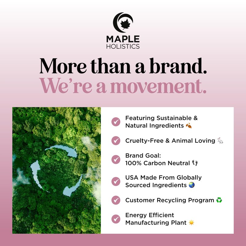 Give your hair and skin a boost with biotin, collagen, and keratin. Our formula is brimming with vitamins minerals and herbs including saw palmetto and horsetail extract which nourish and rejuvenate you from the inside. Expect thicker, healthier looking hair, softer, more supple skin, longer and stronger nails, and even more energy. We believe in real ingredients for real results which is why our formulas are packed with botanical extracts and natural ingredients to provide you with self care products you can feel good about using. At Maple Holistics, we believe that you should never have to sacrifice results when choosing more natural formulas. It's our mission to provide a wide range of affordable beauty and wellness products without many of the common synthetics found in major brands.
