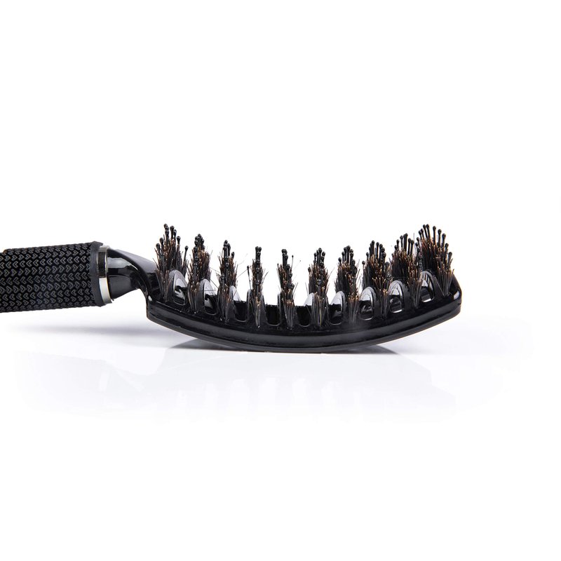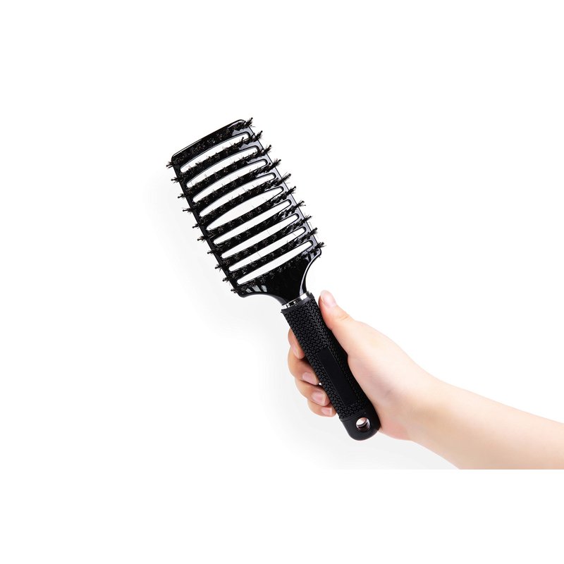 - Oversized Head Curved Brush - This curved hair brush has an extra-large head with a curved shape that functions with all hair types by allowing optimum contact points and angles with the scalp while promoting natural hair oil stimulation.