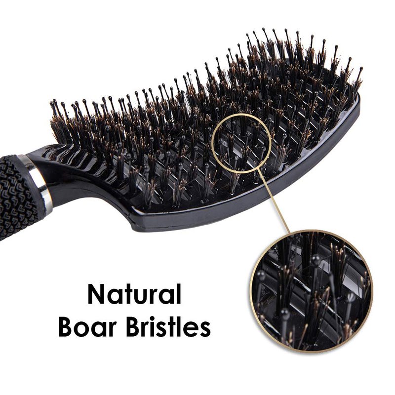 - Boar Bristle Hair Brush - The natural boar bristles of our hair detangling brush promote healthy hair by stimulation of natural oils from the scalp. This natural conditioning process helps distribute sebum evenly throughout your hair, resulting in improved moisture retention, and reduced frizz.
