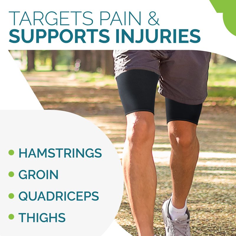 - Thigh Wrap for Effective Support: Our thigh compression sleeves provide maximum support for your legs to help you go the extra mile! Designed to support injury recovery, thigh & sciatica pain relief, bursitis and pulled hamstring
