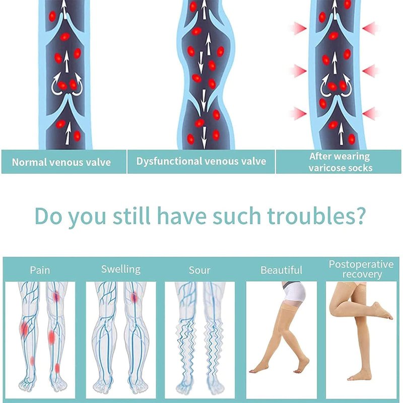 Please buy Athbavib Compression Socks in Wornice Direct Store only. Other Store is all counterfeit our product and we will not take any responsibility if you are deceived.Are you still wearing the same old color compression socks? Want more choices? We have a wide variety of styles! They would add a touch of color to your ordinary life. Try our Athbavib Medical Thigh High Compression Stockings, hug the new world. From Athbavib, Global Leading COMPRESSION SOCKS Brand: CHOOSE US, CHOOSE HEALTH, CHOOSE COMFORT. SAY GOODBYE TO YOUR PAIN. Compression Socks For Women Men Circulation: Enhance blood cycling Reduce foot swelling Relieves varicose veins Relieve muscle fatigue and soreness Post-surgical recovery, and athletic recovery Prevent edema fluid retention Measuring Instructions: Measure around the smallest part of the ankle, right above the ankle bone. Measure around the fullest part of the calf. Measure around the the middle part of the thigh. Toeless Compression Stocking Specifications: Breathable Material: nylon & spandex Fashion Color: Beige Pressure Value: 20-32 mmHg Perfect For These People Suffer varicose veins & Edema Frequently athletic, like running, footbale, hiking Office worker ,nurse and pregnant women Long time wear high heel shoes Warm Tips: Please wouldn't use any oxygenated detergent or cleaners with them. We recommend machine washing and air drying your socks to help the socks last longer A health care professional should be consulted if you're allergic to the top of the silicone material. Package Include: 1 x thigh high compression stocking 20-32mmHg