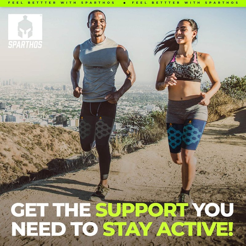 - ✅ YOU DESERVE THE BEST - Tight and discreet Sparthos thigh sleeve fits like a second skin. Crafted from top quality breathable yarn, with silicon strips to keep the sleeve just in the right place. No slipping or rolling off. Are you ready to leap ahead into a life full of motion?