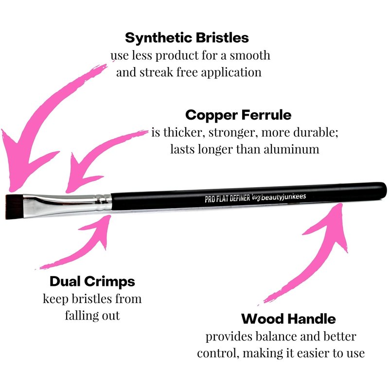 - FLAT MAKEUP BRUSH: Our flat definer brush with short stiff firm bristles creates sharp precise lash lines, and a sharp clean edge under your brows for definition