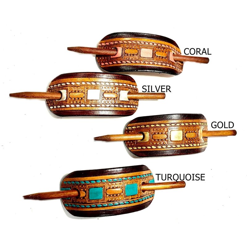 THIN HAIR LEATHER PONYTAIL BARRETTE, PONYTAIL BARRETTE FOR THIN HAIR, HAIR CLIP, SLIDE, WRAP, PONYTAIL HOLDERS, HAIR TIE, HANDMADE, HANDCRAFTED, HAND TOOLED, HAIR BARRETTE, HOLDER, BT 2405