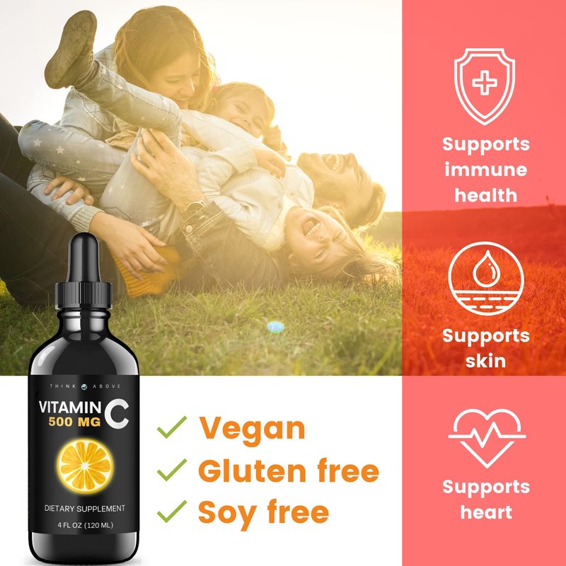 Think Above Liquid Vitamin C - High Dose - Vitamin C Drops - for Adults and Kids - 500 mg - Liquid VIT C - Non GMO - Vitamin C Liquid Supplement (4 fl oz 120 ml)