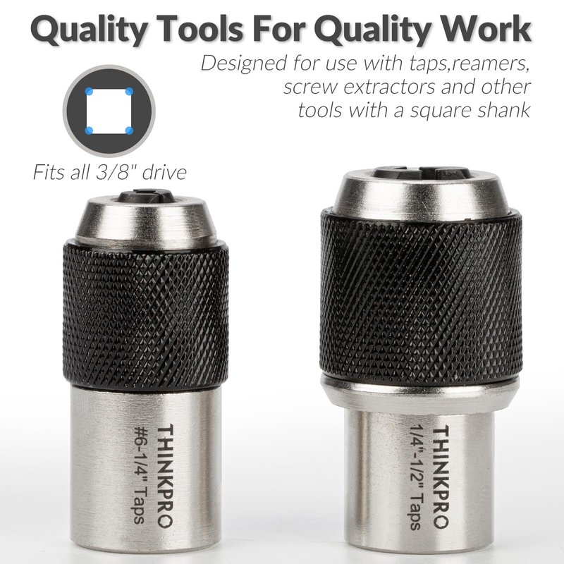 - 【Secure and Stable Grip】 Get the job done without the stress of taps slipping or loosening with our tap sockets. The adjustable jaws offer a snug fit for taps ranging from #6 to 1/2" in diameter, providing a secure and stable grip.