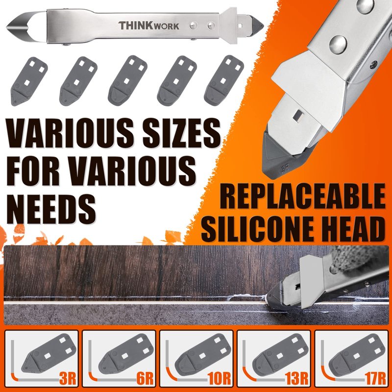 THINKWORK Caulking Tool Kit, 4 in 1 Caulk Remover Tool, Stainless Steel Caulk Tool for Kitchen Bathroom Window Sink Tile Joint, Silver