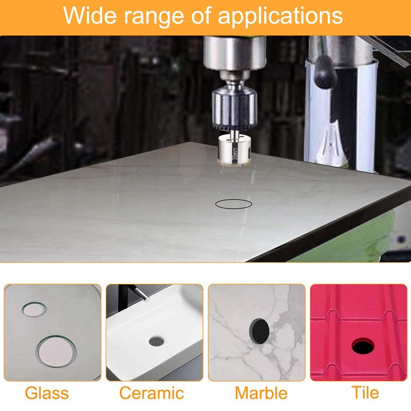 - 【Ideal select】This diamond-coated hole saw bit can be used to remove rings on glass, marble, tile, ceramic, PVC or other materials. When the diamond bit is working, please continue to add water to reduce the drilling speed, reduce the drilling pressure, and increase the water lubricity, which will greatly extend the life of the bit.