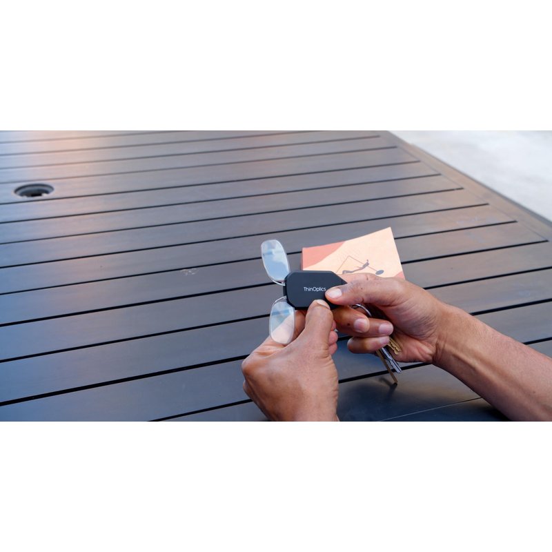 ThinOptics Keychain Case and Readers Rectangular Reading Glasses, Black, 44 mm + 2
