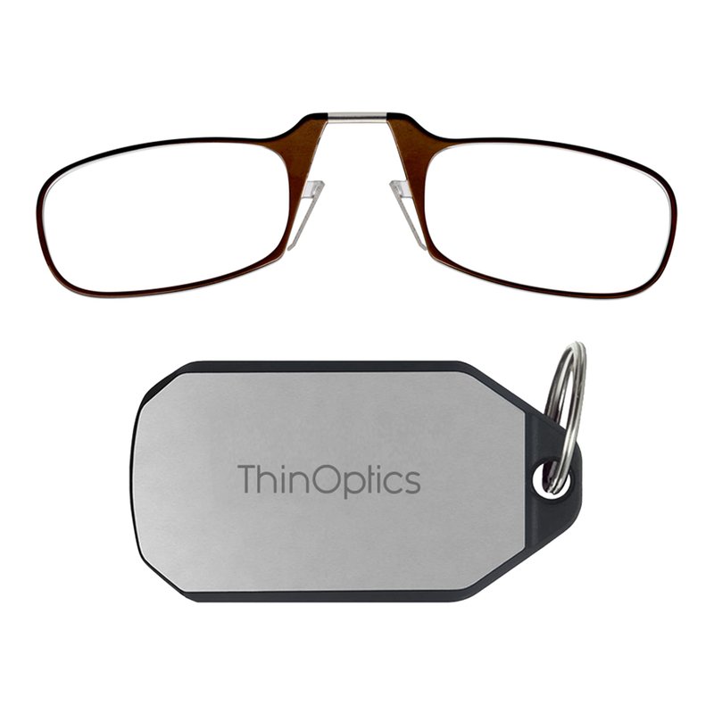 ThinOptics Keychain Case + Rectangular Reading Glasses, Brown, 44 mm + 2