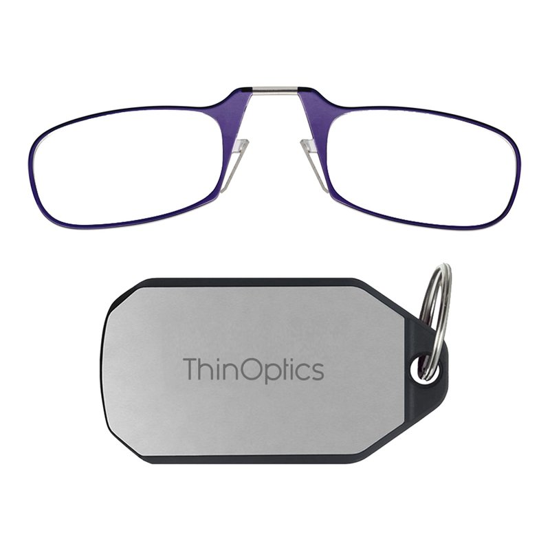 ThinOptics Keychain Case + Rectangular Reading Glasses, Purple, 44 mm + 1
