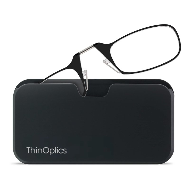 ThinOptics unisex-adult Reading Glasses + Black Universal Pod Case | Black Frames, 2.50 Strength Readers Black Frames / Black Case, 44 mm