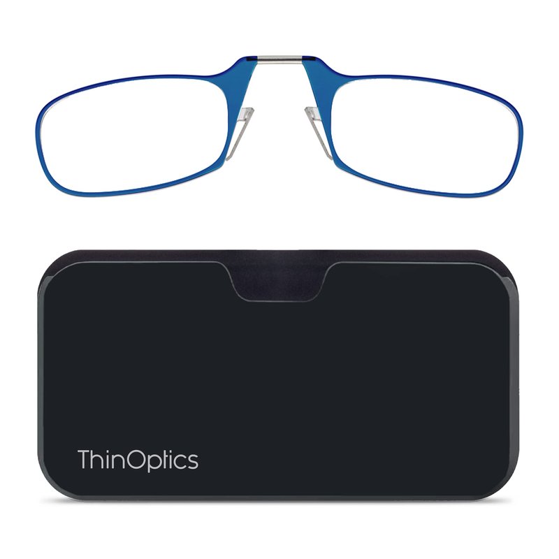 ThinOptics unisex-adult Reading Glasses + Black Universal Pod Case | Blue Frames, 1.50 Strength Readers Blue Frames / Black Case, 44 mm