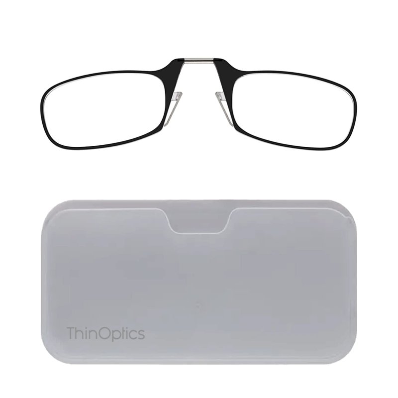 ThinOptics unisex-adult Reading Glasses + White Universal Pod Case | Black Frames, 1.50 Strength Readers Black Frames / White Case, 44 mm