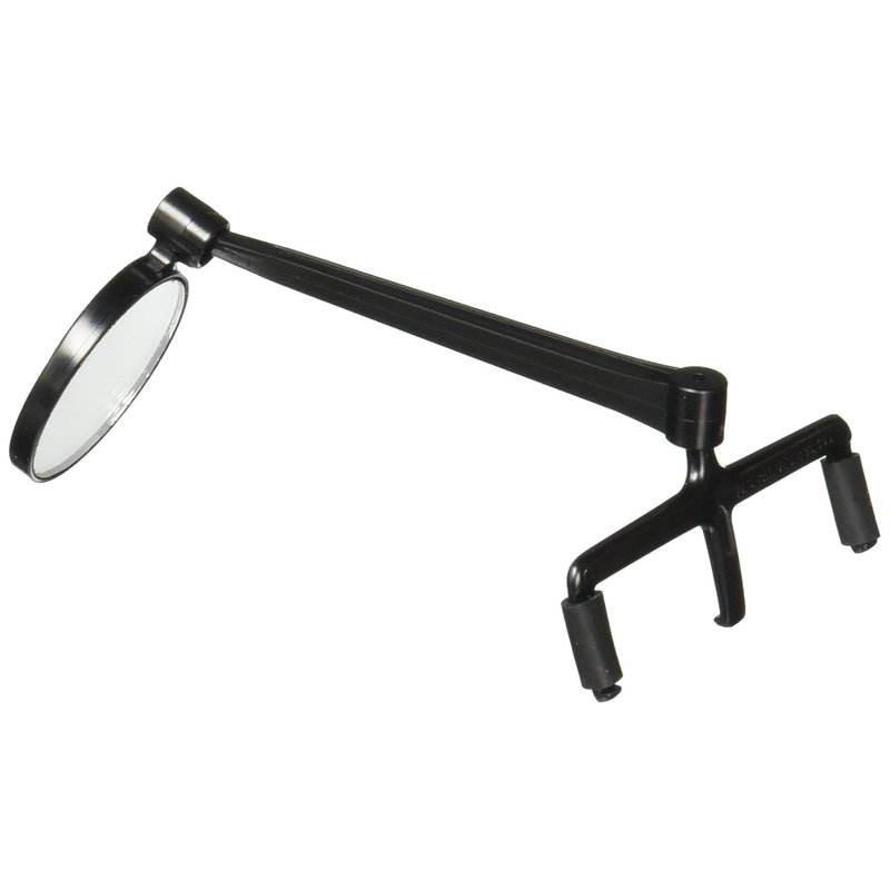 This mirror clips to the temple piece of most Eye Glasses and Dark glasses. The mirror is 1 1/8 inches in diameter. The mirror is real glass and is shatter proof.