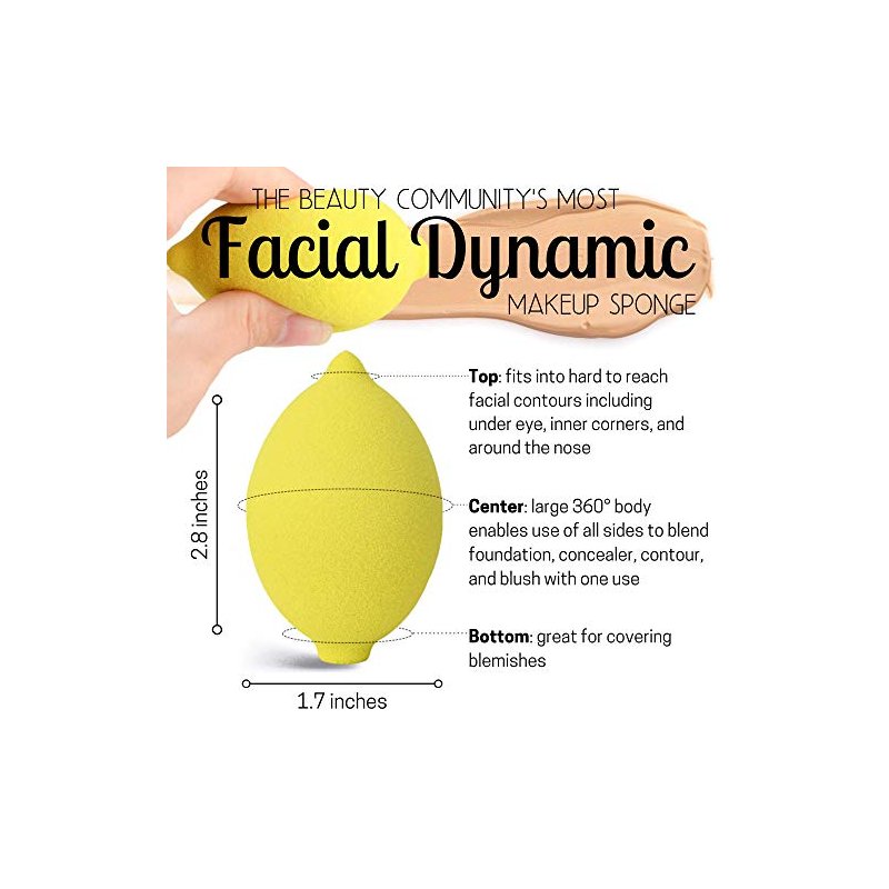 - [Thirsty Lemon Reaches Every Contour] – This is the state-of-the-art in sponge design! Not only is this trendy lemon colorful & cute; it is designed to reach everywhere: under your eye, the crease of your nose, the inner corner of your eye, and more.