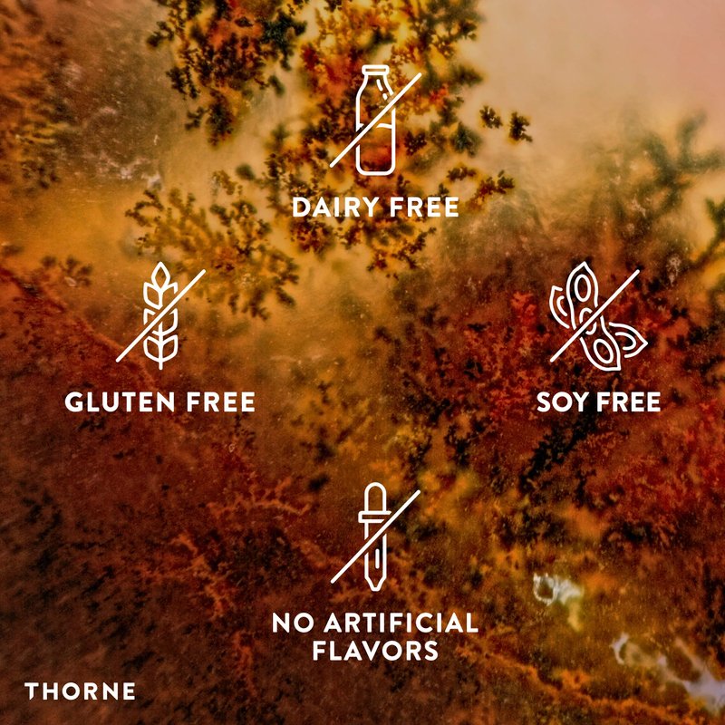 - Free From: Every Thorne product is made with the purest possible ingredients - without gluten or other major allergens (eggs, tree nuts, peanuts) This product also contains no soy, dairy, shellfish, or fish