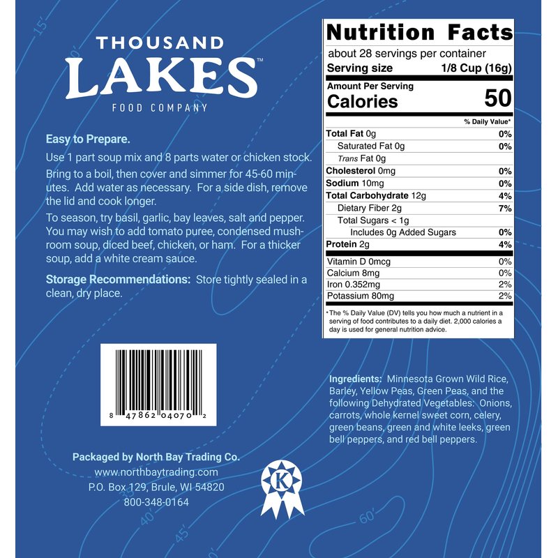 This Minnesota wild rice and vegetable dry soup mix is fat free and made with our famous Minnesota-grown premium grade wild rice, organic barley, and 11 dried vegetables.