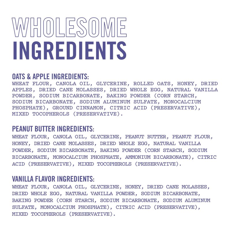- Wholesome & Delicious: Each Tasty Treat Is Baked In The Usa In Small Batches, Packed With High-Quality, Real Ingredients Like Oats, Dried Apples, Natural Vanilla, Peanut Butter, And Honey, Along With Others That You Can Actually Pronounce