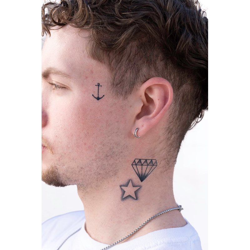 Thug Ink Temporary Tattoos - Volume IV - 8 Temporary Tattoos ~ Face Tattoos ~ Microphone, Dollar Sign, Diamond, Anchor, etc~ Thug Life ~ Fake Tattoos ~ Water-transfer Tattoos