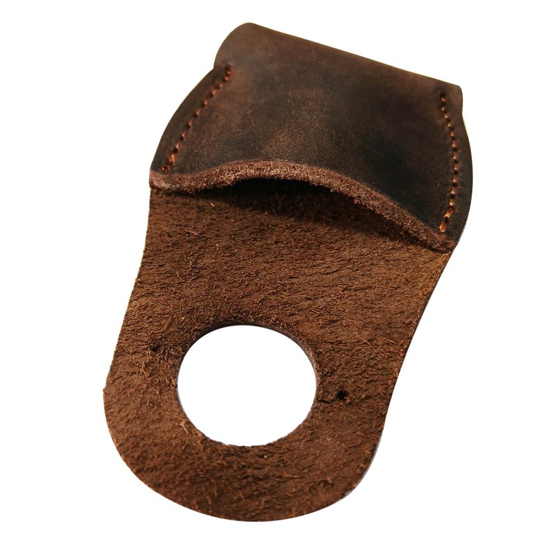 The natural brown cowhide used in the Thumb Guard gives it a classic, vintage appearance.