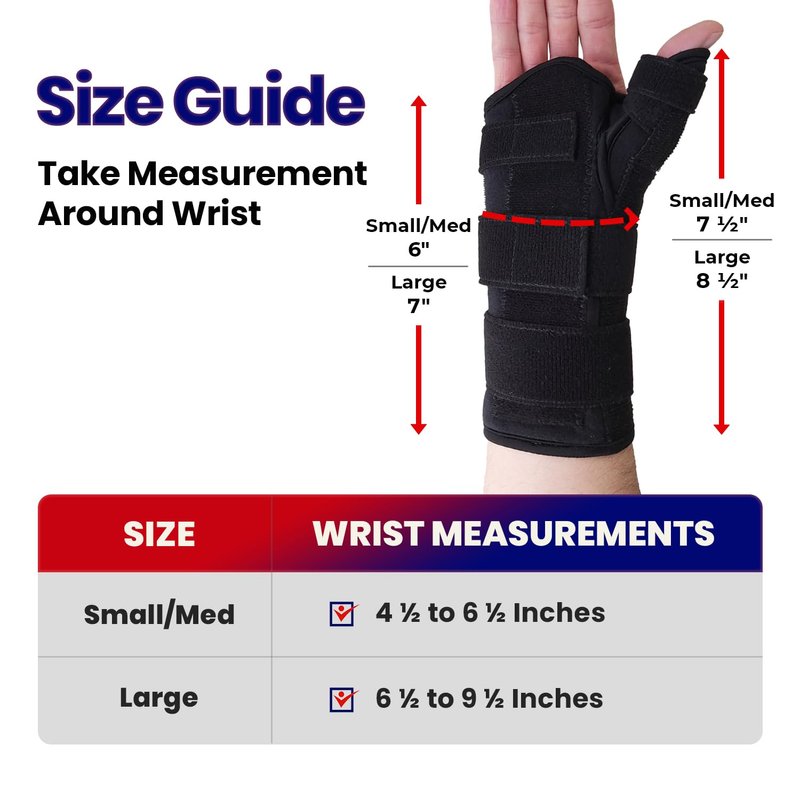 - [THUMB BRACE & WRIST SPLINT] Acts both as a thumb stabilizer for thumb joint injuries recovery, as well as wrist thumb brace for wrist injuries recovery, carpal tunnel syndrome relief. Has an adjustable wrist splint to stabilize your wrist and thumb.
