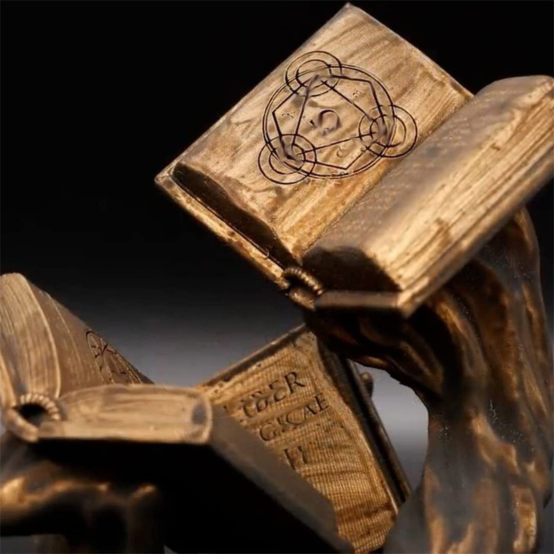 - This magical book decoration is designed in composite resin, The sculpture is 5.90 inches (15 cm) high,hand-painted and individually polished. Although made of hardened composite resin, this doll is not recommended for children under the age of 9, as care needs to be taken to prevent breakage/damage during use.