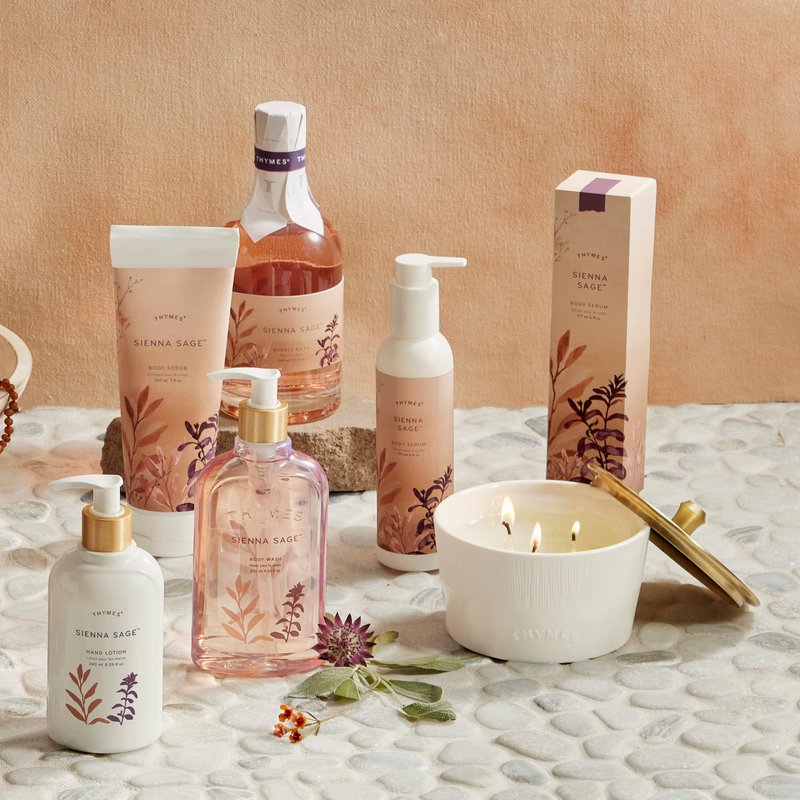 - Thymes Sienna Sage Body Wash: Enjoy a nourishing, fragrance filled shower experience with Sienna Sage Body Wash. This warm, soothing fragrance comes to life when combined with water and leaves skin conditioned.