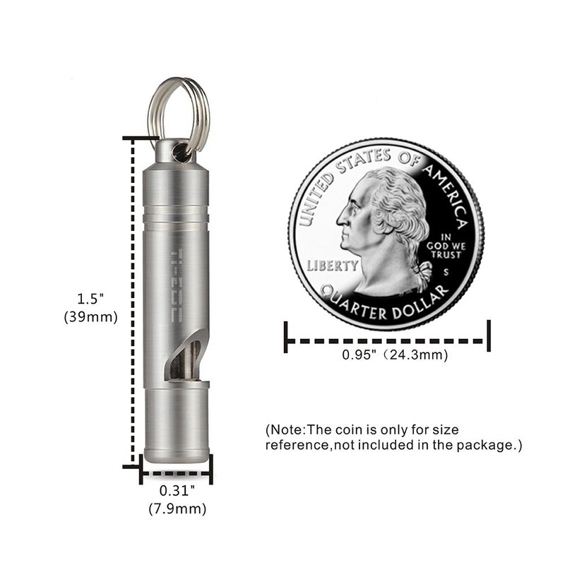 Package include: 1 X TI-EDC Titanium Keychain Emergency Survival Whistle + Bonus Key Ring and Necklace Chain (23.6 inches)