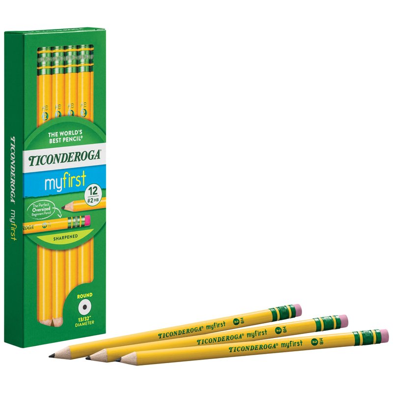 Ticonderoga My First Wood-Cased Pencils, Pre-Sharpened, 2 HB, Yellow, 12 Count