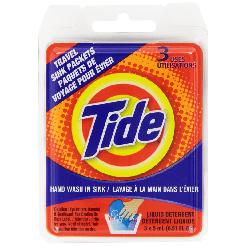 - Just enough Tide liquid detergent to wash a few items in the sink when traveling