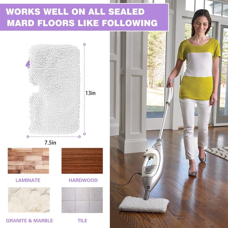 - ✔【Top Material】Made with Top Quality Microfiber(80% Polyester/20% Polyamide),Strong water absorption, dry fast, effective cleaning. Washable and reusable steam pocket mop pad for daily use.