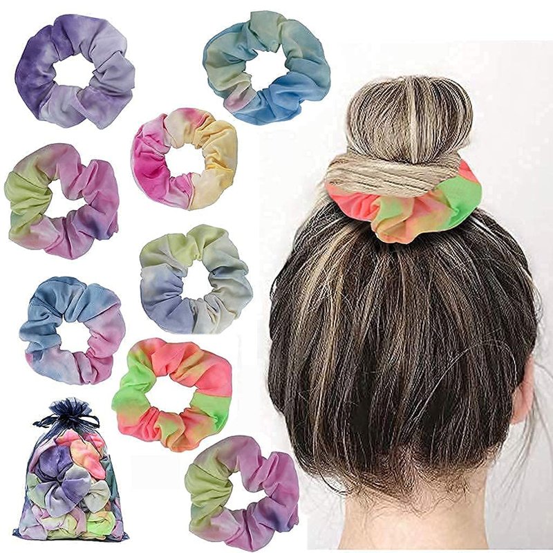 - Fashion Scrunchies Set: 8 PCS high quality soft tie-dye hair scrunchies, tie dye accessories for women. The bright color hair scrunchies for girls, teens, women. 10 cm/3.9 inches in diameter.