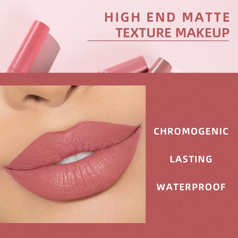 Tiejdhr 3Pcs Nude Matte Lip Lipstick, Velvet Smooth Crayon Lip Stain, Nude Lip Tint Long Lasting & Nourishing Lip Gloss Non-stick Cup Lipstick for Women Makeup (Set B, F)