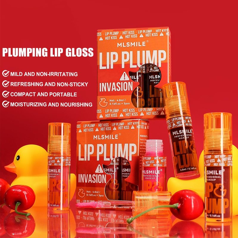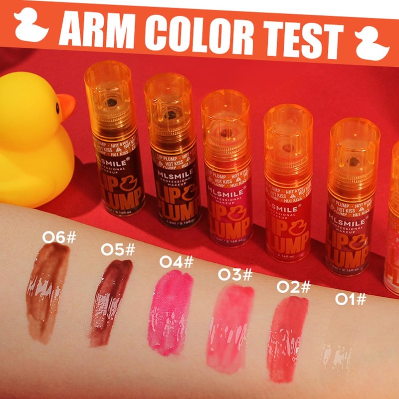 This collection of six ultra-glossy lip plumpers delivers a luscious pout with a hint of shine. Each tube contains a nourishing formula that instantly volumizes and hydrates your lips, leaving them looking fuller, softer, and irresistibly kissable. With an array of flattering nude and bold shades, from subtle peach to daring crimson, you'll find the perfect hue to complement your unique look. These lip plumpers glide on smoothly and stay put for hours, ensuring your pout remains plump and radiant all day long. Pucker up and let your lips do the talking with Lip Plump set. Net Weight: 0.16 fl oz x 6 pcs.